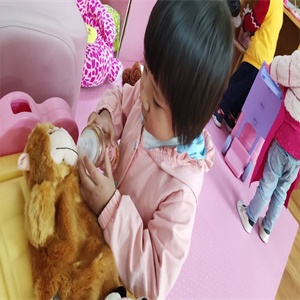 幼儿园的教室里真有趣。在娃娃家区,我可以提着篮子去买菜,模仿爸爸妈妈做饭、炒菜,还可以给洋娃娃穿衣服、喂饭 、扎辫子、带她去医院看病。