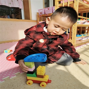 在建构区,我可以跟小伙伴们一起搭建小房子、小滑梯、小火车;在美工区,我可以玩彩泥,包饺子、搓汤圆、做各种各样的小饼干,我也可以选择自己喜欢