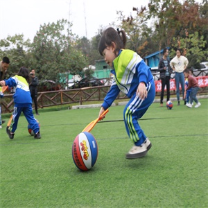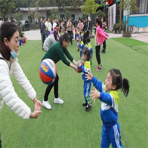 环节二:亲子互动游戏。此环节,爸爸妈妈们和宝宝一起玩了滚球入洞、投球入框、赶小猪以及集体传球等一系列篮球体能活动,增进了亲子之间的交流与合作。